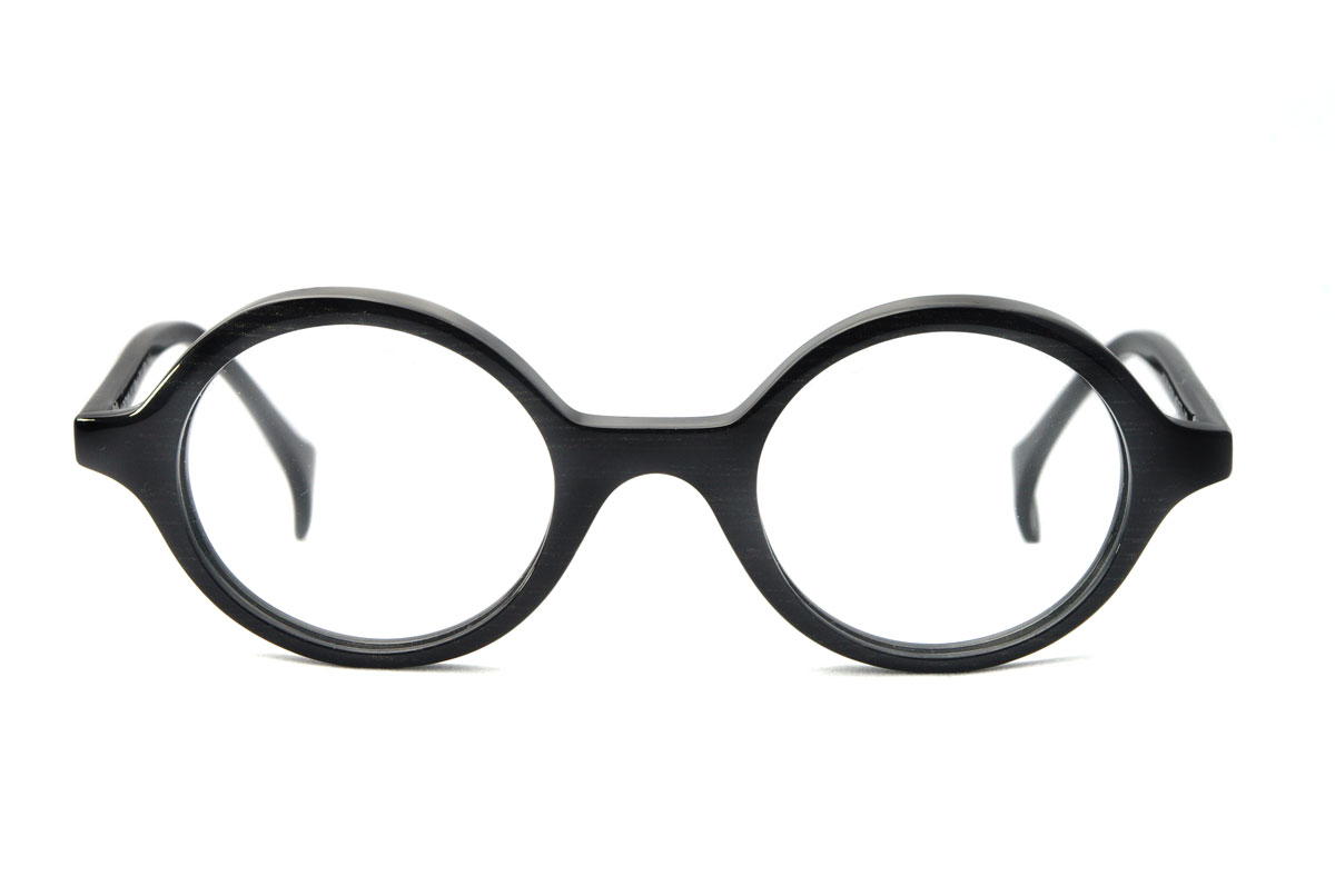 デッドストックの生地をはじめとした表情豊かなカラーと相まって、女子がかわいく掛けられる丸メガネに仕上がっている。