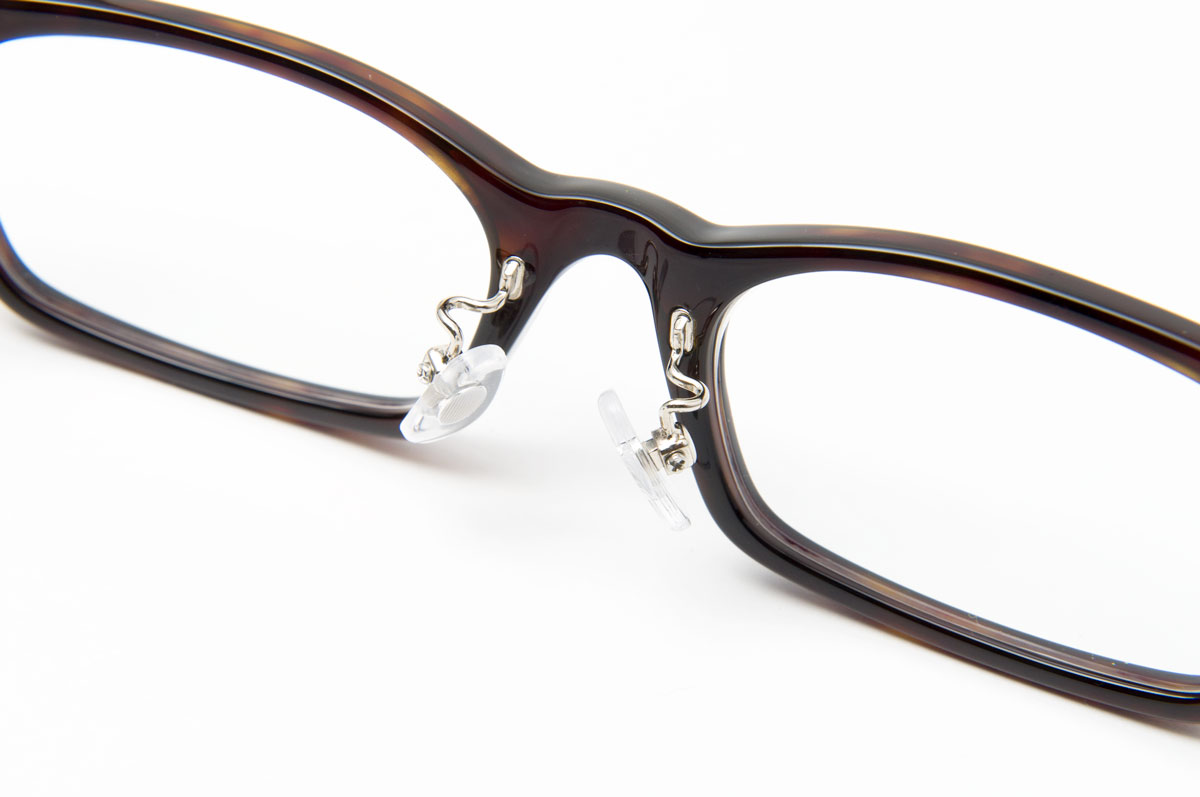 さらに、鼻パッドには、金属製の調整できるタイプを採用。セルフレームはズレやすいし、レンズにまつげが当たるからと敬遠していたひとにも安心。