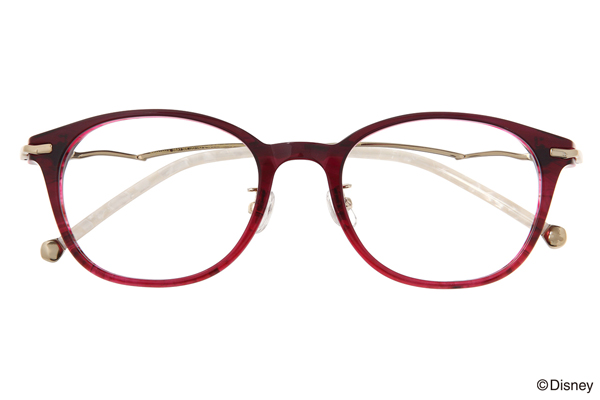 “思いやりがあって前向きなプリンセス”白雪姫をイメージ。サイドに物語のカギとなるリンゴをあしらったのがポイント。テンプル(つる)先端には白雪姫のドレスのパフスリーブを再現したメタルパーツ付き。2型4種で、価格は10,000円(税別、標準レンズ代込み)。