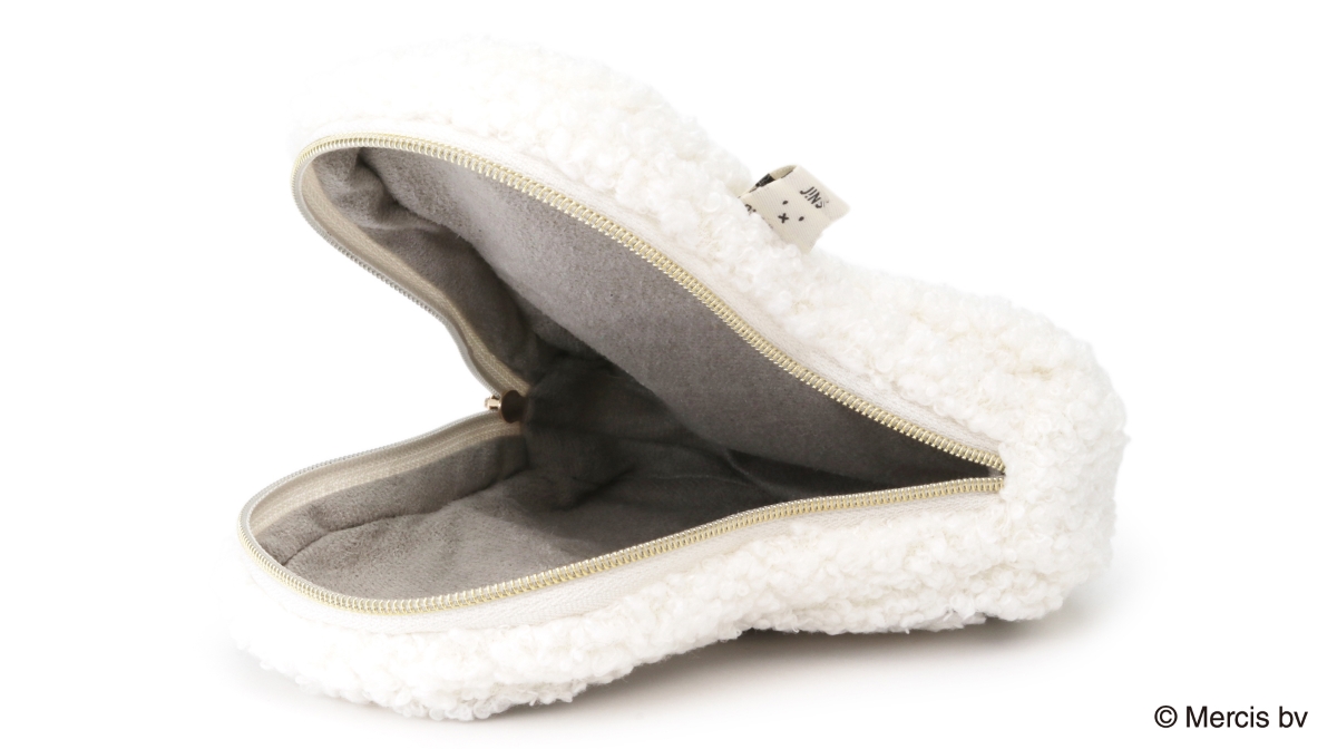 おばけごっこをする「おばけミッフィー」が刺しゅうされた、もこもこしたポーチ。小物入れとしても便利に使えそう。