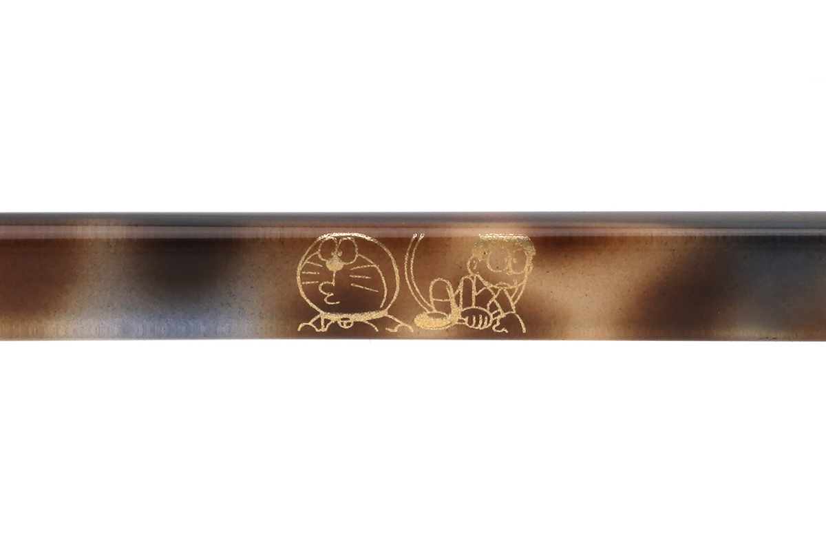 テンプルにドラえもんのイラストを彫金で施し、テンプルエンドにはドラえもんのしっぽと手をイメージした遊び心あるデザイン。