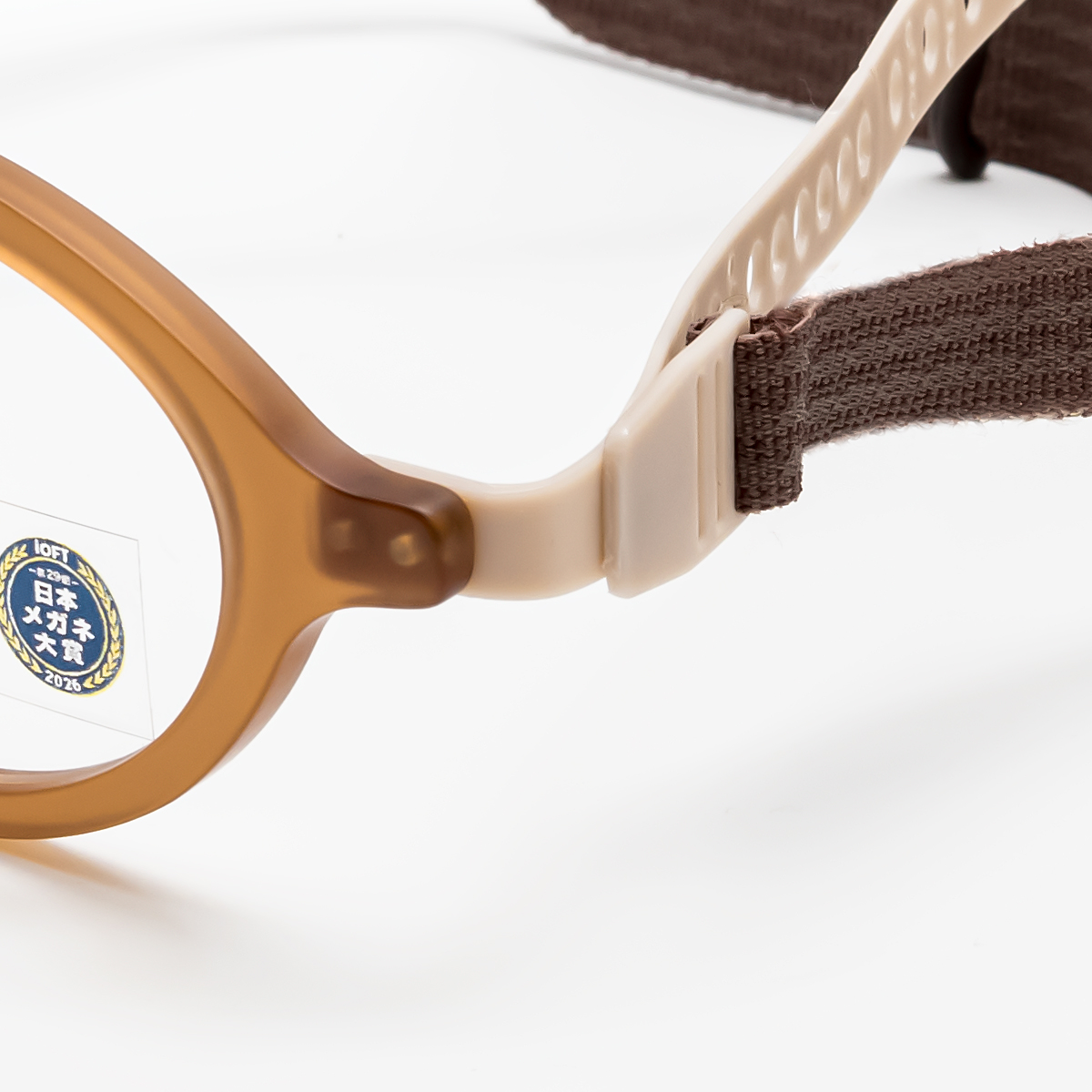 テンプルをつなぐ部分は、ふとんの中で寝てしまっても変形しにくいようデザインされている。
