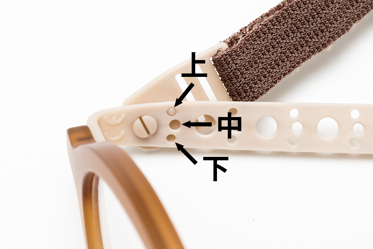 ノーズパッドは幅や角度の調整に加えて、取り付け位置も上・中・下の3段階で調節できる。