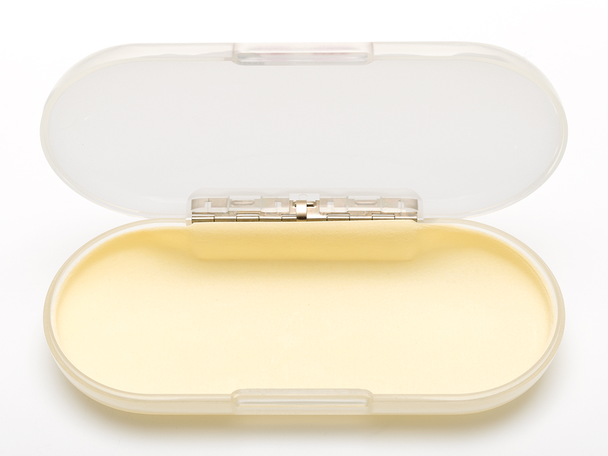 優眠に付属するメガネケースは軽くて丈夫な樹脂製で、開閉もしやすく扱いやすい。