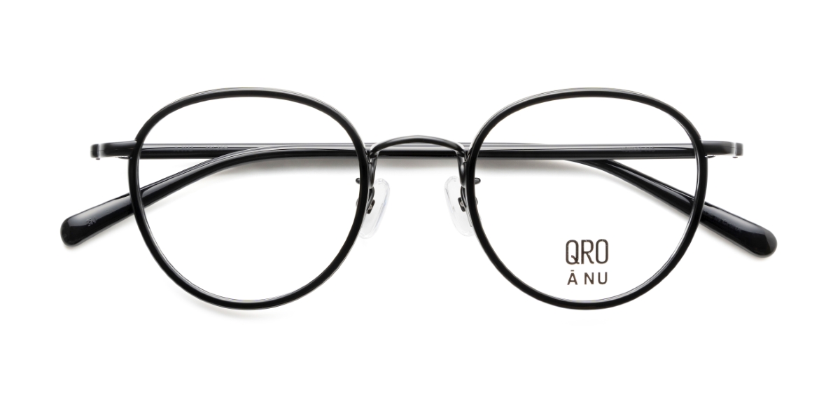 QRO(クロ)のフレームは、光沢のある黒とマットな黒を組み合わせている。光の当たり具合や見る角度によって異なる表情が楽しめるほか、フレームと掛ける人の顔に立体感を与えてくれる。