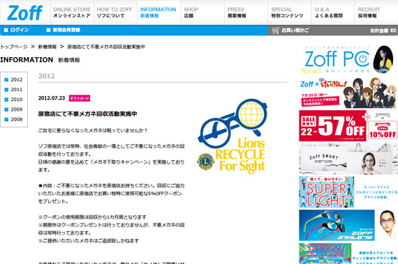 ▼ Zoff(ゾフ)では過去にも「メガネの下取りキャンペーン」を開催。