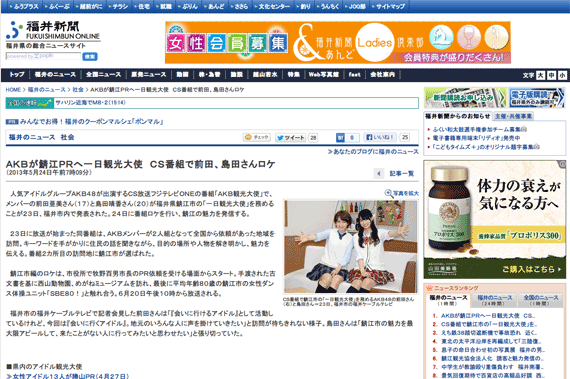 AKBが鯖江PRへ一日観光大使 CS番組で前田、島田さんロケ 社会 福井のニュース :福井新聞
