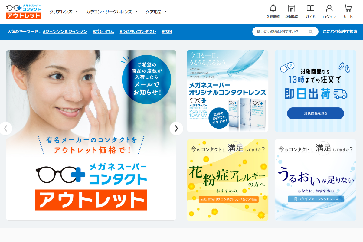 第17位:メガネスーパーがコンタクトレンズのアウトレット通販サイトを開始、使用期限が短い商品を特別価格で販売 ⇧【初登場】