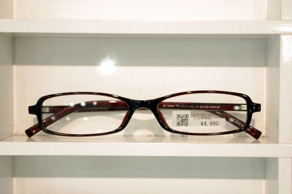 今回無料で配られたのは、新作メガネ Air frame(エア・フレーム)第3弾のうち、オダギリジョーさんと栗山千明さんが出演する新CMで使われているモデル。メンズ、レディスとも、顔になじみやすい形と落ち着いた色合いで、多くのひとに似合う、掛けやすいデザインになっている。