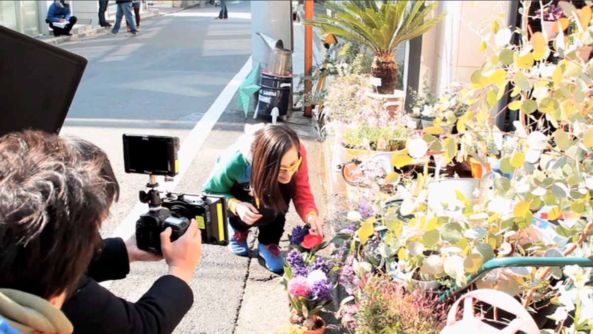 花屋のシーンで、きれいな花につい見とれてしまった水原希子さん。