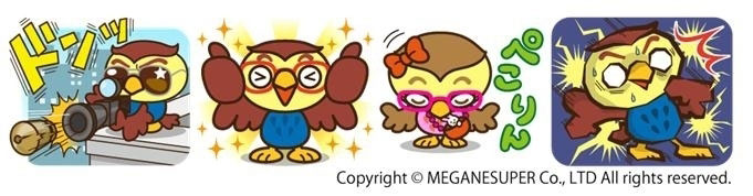 大手メガネチェーンのメガネスーパーは、無料でメールや電話が楽しめるスマートフォンアプリ LINE(ライン)にて、公認フクロウ「フクタン」「フクリン」をモチーフとした無料スタンプの配信を12月16日(火)よりスタートした。