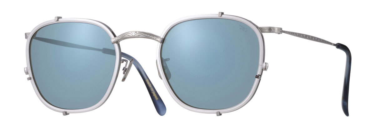 メタルフロントの内側にメタルリムをはめ込んだ斬新な構造のサングラス。