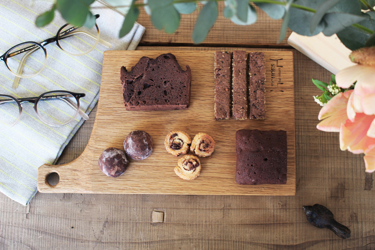 「バレンタインギフト」は、The PARKSIDE ROOM(ザ・パークサイド・ルーム)のスタッフも通っている kibi cafe に製作を依頼した特別な焼き菓子。「カカオボール」「うずまき」「カカオとハーブのスティック」「あずきのブラウニー」「ココアとチョコのケーキ」の5種類。