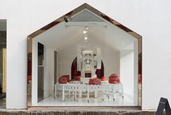 「ジェントルモンスター シンサカロスキル フラッグシップストア」は、白壁に設けられた大きな入口と窓が印象的。