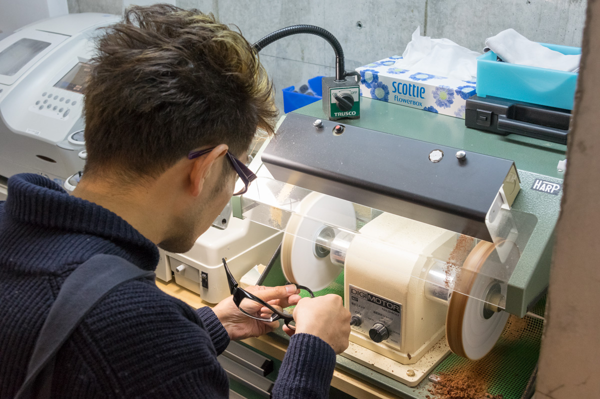 メガネのフィット感を高める鼻パッドのカスタム「鼻盛り」にも対応。長谷川店長自ら加工する。