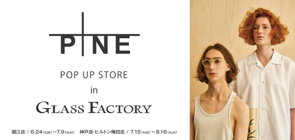 メンズファッションブランド PINE(パイン)のアイウェアを豊富に取りそろえたポップアップストアが、オプティカルブティック GLASS FACTORY(グラスファクトリー)にオープン。