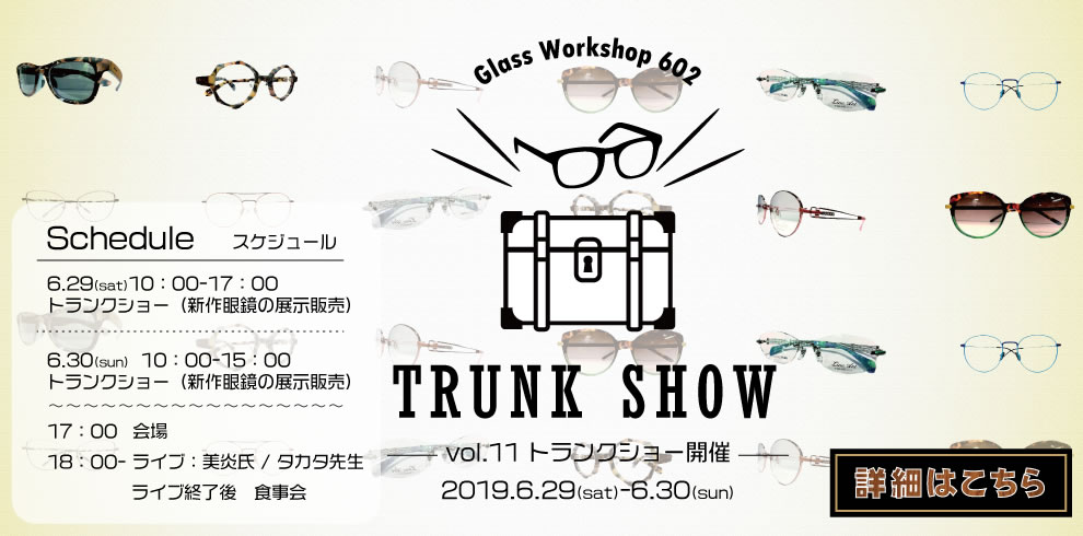 東京・西荻窪のメガネ専門店「glass工房602(グラスコウボウロージー)」では、毎年恒例のトランクショーを6月29日(土)・6月30日(日)に開催する。