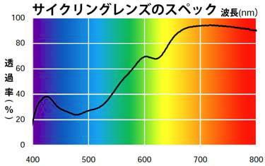 (写真3)JINS Cycle(ジンズ サイクル)に使われているレンズの波長(色)ごとの透過率を示すグラフ。image by JINS