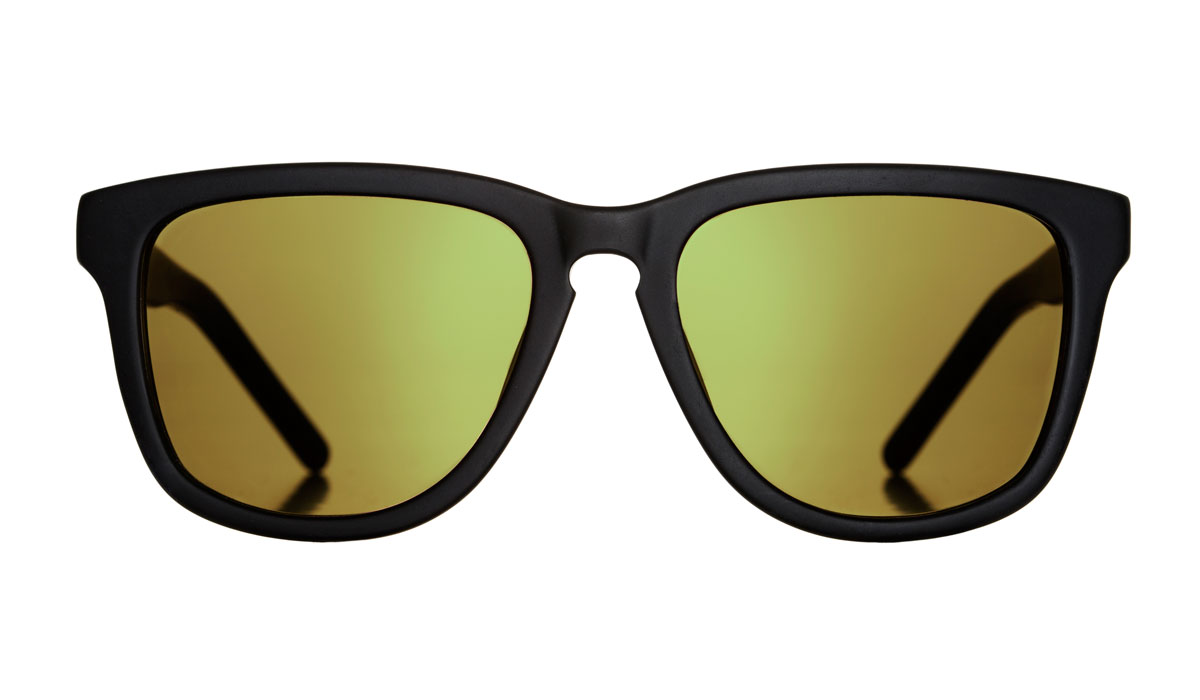 大きめシェイプのウェリントン。カラーMatte Blackは、マット仕上げのフレームとミラーレンズとの組み合わせがクール。