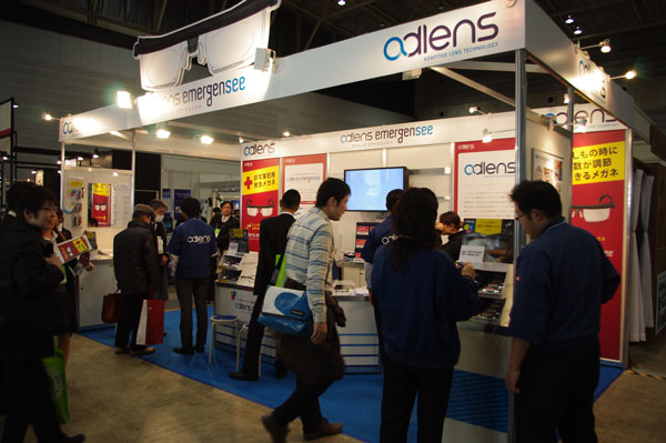 災害などの緊急時に向けて発売中の「度数を自分で調節できるメガネ」 adlens Emergency(アドレンズ エマージェンシー)が、2月2日(木)・3日(金)にパシフィコ横浜で開催された「震災対策技術展」に、昨年に引き続き出展された。