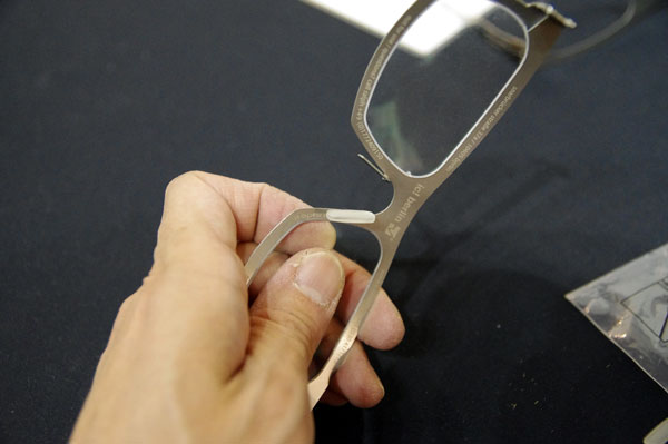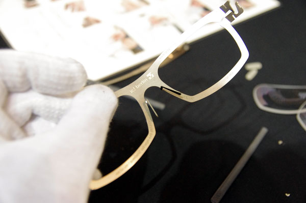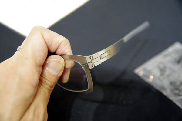ic! berlin(アイシーベルリン)のフレームは、極薄のステンレスシートでできているのだが、実際に触れてみると思いのほか固く、ペンチを使って曲げるのにもけっこう力が必要だった。