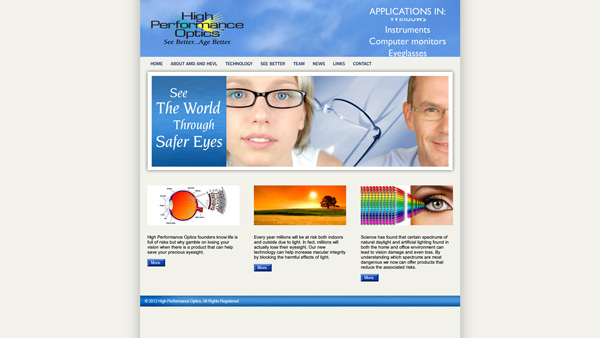 「Welcome to Hgh Performance Optics」(スクリーンショット)