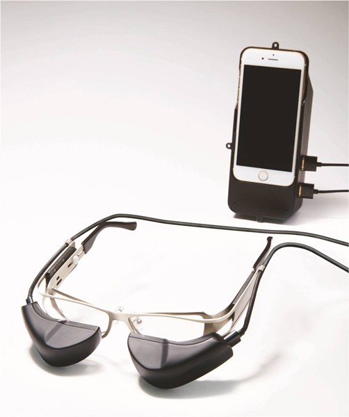 ▼メガネスーパー、ウェアラブル端末b.g.(ビージー)のプロトタイプをウェアラブルEXPOで展示