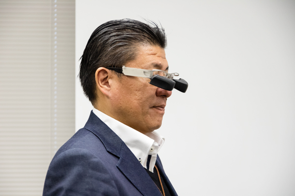 メガネ型ウェアラブル端末は他社でも開発されているが、「見え心地」と「掛け心地」を追求しているのが b.g.(ビージー)の特長。メガネスーパーという「メガネ屋」が開発したウェアラブル端末として、長時間着用して作業しても疲れにくいよう、さまざまな工夫が凝らされている。