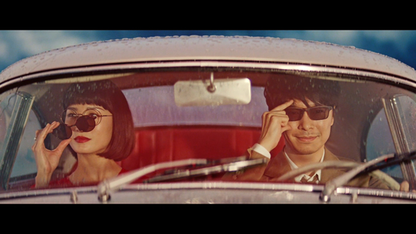 CMはフィルムで撮影したのですが、「ドライブ」篇ではとてもきれいなクラシックカーに乗り込み、雨が降って虹が出て日差しが強くなる、そんな演出が印象的でした。美しく変わっていく天候にすぐに対応できる JINS Switch(ジンズ・スイッチ)がより魅力的に映っていると思います。「語る」篇での水たまりを飛び越えるシーンでは、軽快さとユニークな演出とが調和できているのではないでしょうか。