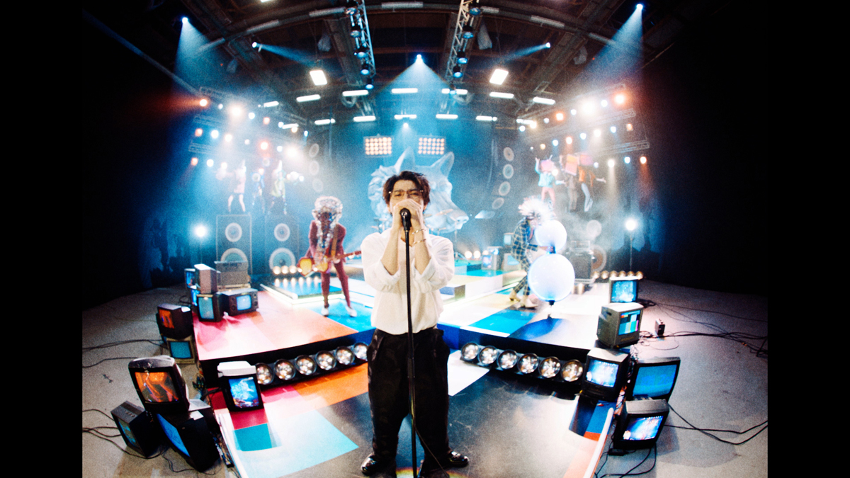 このCMは、ミュージックビデオさながらの大がかりなライブ会場のセットを使って撮影。ステージには、メガネの形を模したギターやベースを奏でるメンバー、デジタル機器のコーラス隊、Zoff(ゾフ)のシンボルマーク「ハスキー犬」をモチーフにした巨大なオブジェなどが登場し、村上虹郎さんのボーカルをサポートしている。