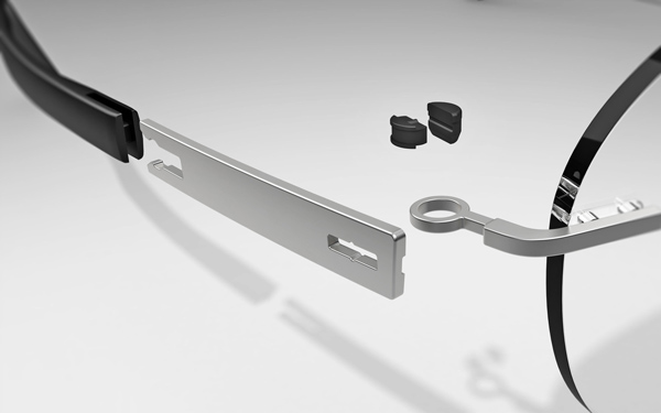 レンズの側面にミゾを掘り、板状のリムをはめ込んでレンズを固定するフレームには、掛け外しの際にかかる力により、レンズの側面を傷付けてしまう商品も多く見受けられる。この特許出願中のデザインは、こうしたレンズの損傷を避けるために開発された。このフレームは板状のメタル素材で作られているが、テンプル(つる)をどんなに大きく広げてもレンズのミゾに力が加わらないので、レンズが壊れることはない。